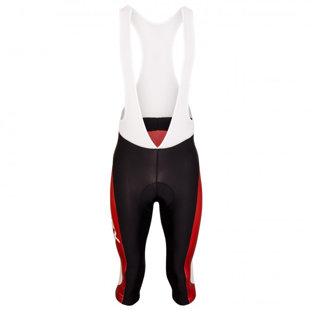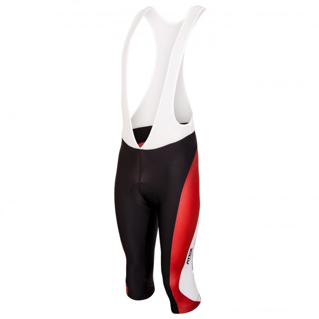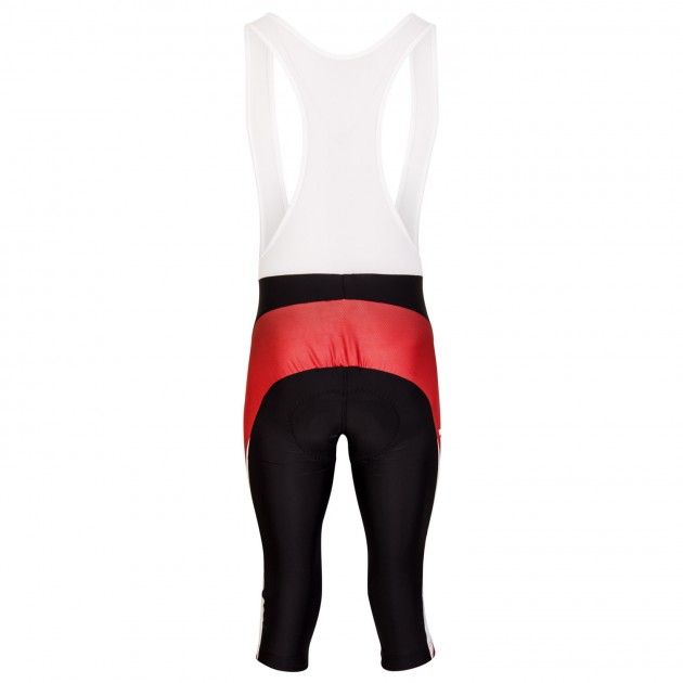 The basic model of cycling 3/4 shorts with bibs include high-quality Profi pad and bibs made from Mesh material. Trouser legs are finished with wide silicon gripper with a possibility of printing. One-piece U-shaped panel is seamless for more comfort. It is possible to add reflective trims at your request or your own design on grey areas as seen in the picture.