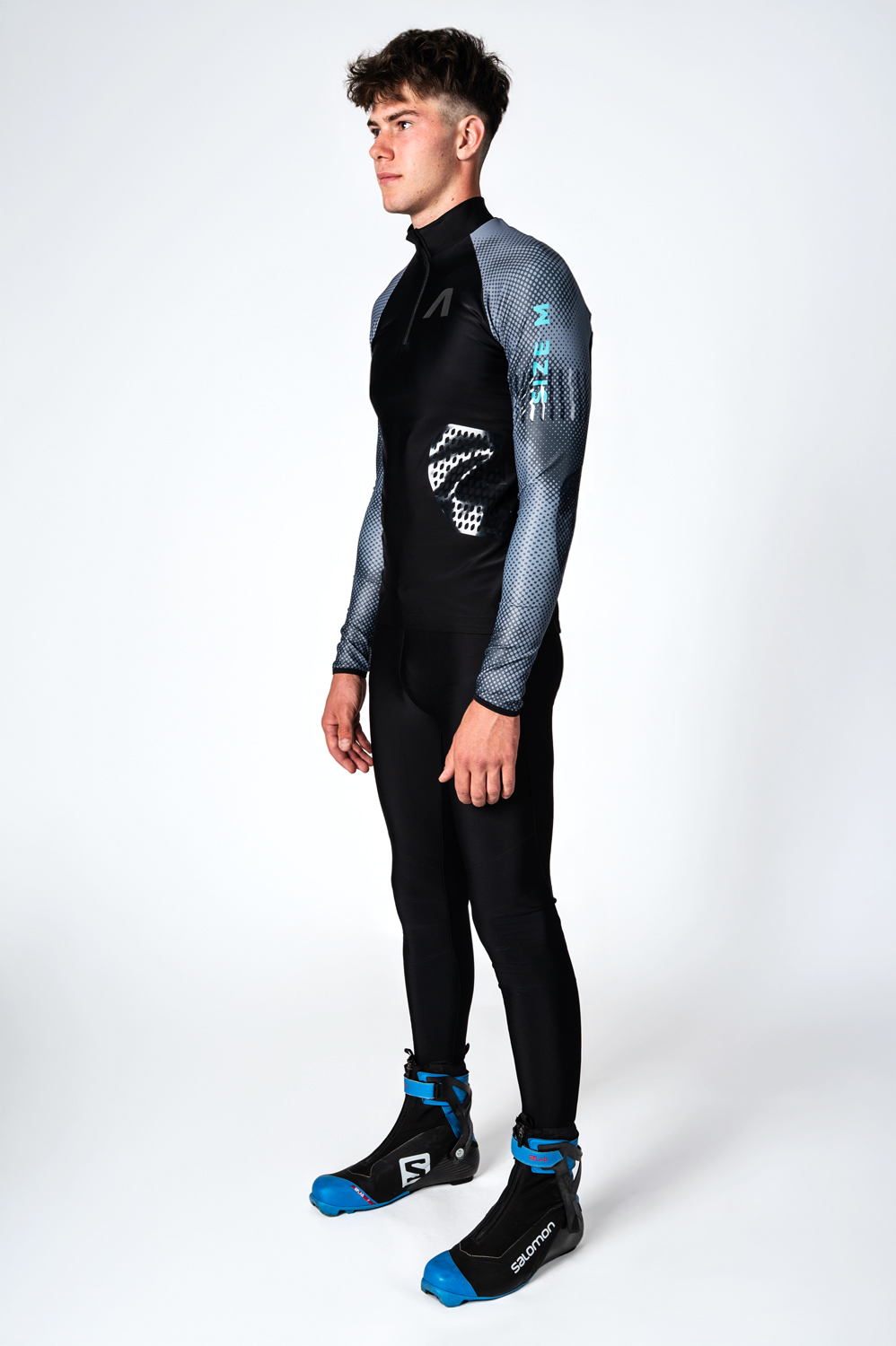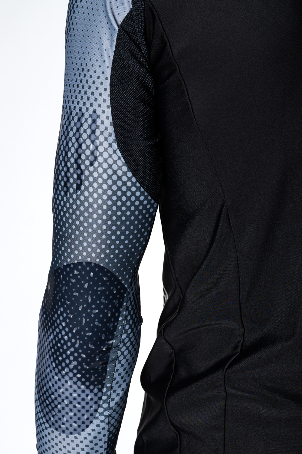 It has close-fitting and is made from stretchy fabric Espan grit that offers light compression. The other materials are applied onto details. Children’s version is made from warm Roubaix material to provide necessary thermo-insulation. Roubaix can be also found on the inner stand-up collar panel in order to provide more comfort. Mesh material with a netlike structure increases breathability and therefore used on the back of armpit panels and in between the shoulder blades (not on children’s version).