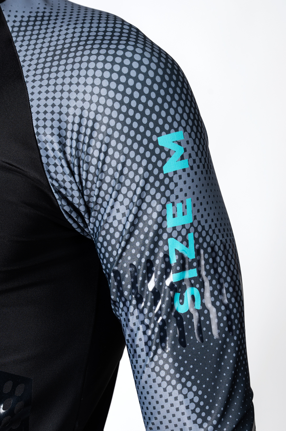Short underlaid zip with a cover and raglan sleeves hemmed with elastic gripper are essential parts of this jersey together with silicone rubber in the bottom hem to keep the jersey in place when running.