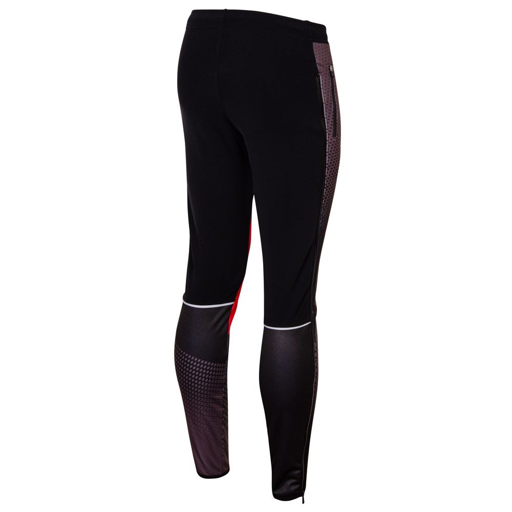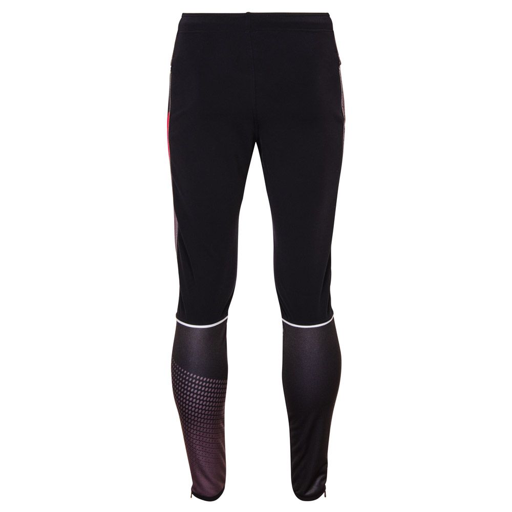 The long running changing trousers are in a semi-fitting design. Dual-fabric construction characterises these trousers: the front legs with specially shaped knee areas and back calf panels are made from warm three-layer membrane Zerowind material or Softshell material that is resistant to wind and moisture. Belt and upper part of back legs are made from very stretch and soft Roubaix material for better breathability and full range of motion. Trousers are anatomically shaped and this can be enhanced by a waistband with a drawstring. There are also two zip pockets in the front with lock down system. Long underlaid and water-resistant zips along almost all length of the legs make them versatile and ready to be used before and after sport activity and makes them easier to put on while wearing boots. Lower turn-ups are finished with edging elastic. Distinctive reflective details are at the back.