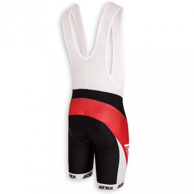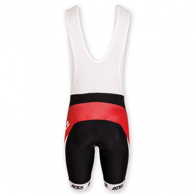 The cycling shorts with bibs and wide elastic in its basic model include high-quality Profi pad and bibs made from Mesh material. Legs are finished with wide silicone gripper that can be printed. One-piece U-shaped panel is seamless. At your request reflective details can be added or your own design printed on grey areas as seen in the picture.