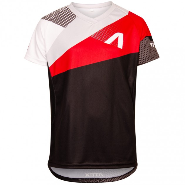 semi-fitting kids mtb jersey is made from breathable fabric coolspark, the sides are from material asteria for increased elasticity. v-neck, short raglan sleeves and elastic sides that minimize the number of seams in the armpits. the bottom hem and sleeve cuffs are folded without rubber. the jersey comes in a long sleeve version too. reflective details at your request.