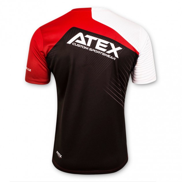 The rugby suit with short set-in sleeves is made from a special and very resistant material with high weight. It has reinforced double seams and a round neckline. Non-slip areas on the chest for better grip of the ball can be added at your request.
