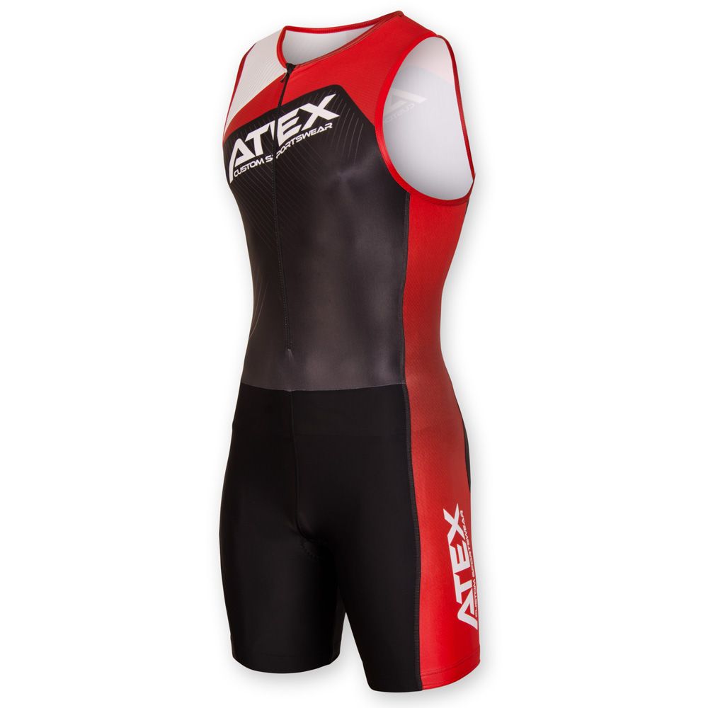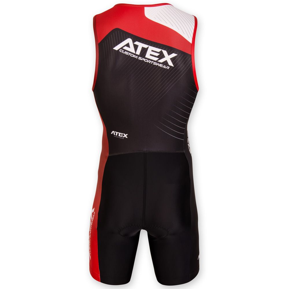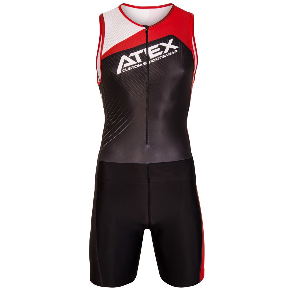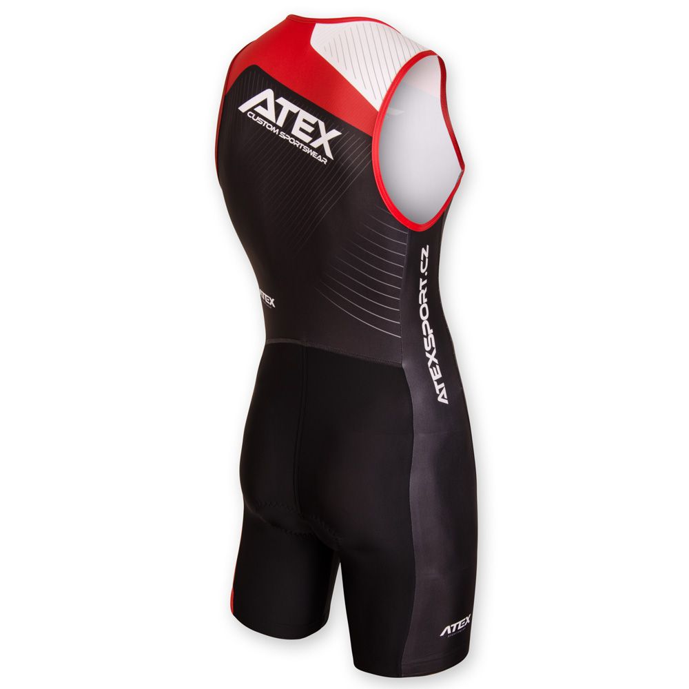 The basic model of triathlon sleeveless suit Profi offers short trouser legs with an elastic leg gripper. Underlaid zip with cover on the front panel and high-quality triathlon pad. Zip pocket on the back panel and reflective details can be added at your request. Grey areas as shown in the picture can be printed on.