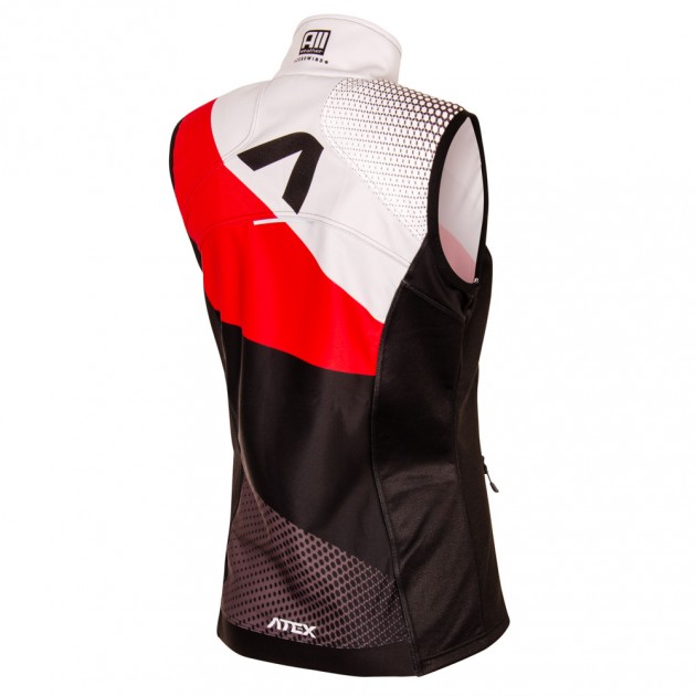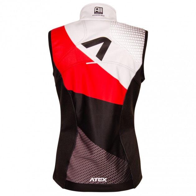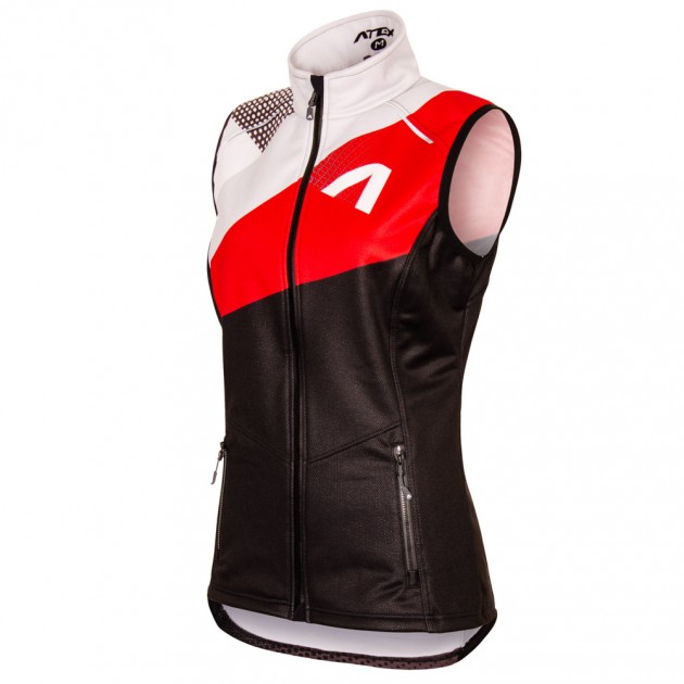 The women’s running gilet in close-fitting and flattering design is made from two materials. The main part is made from three-layer membrane material Zerowind (Light or Thermo) that is resistant to wind and moisture. Middle back panel and underarms are made from very stretch and soft Roubaix material for better breathability and full range of motion for the sportsman. Gilet is anatomically shaped with a stand-up collar raised and lightened by soft and quick-drying material on its reverse side. In addition full-length zip with covers at both ends and two zip pocket come as standard. Armholes are hemmed with elastic and bottom hem is without elastic. Front and back panel is equipped with reflective details. This gilet is designed to be close-fitting and used before a race. In case of layering we recommend buying a bigger size.